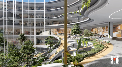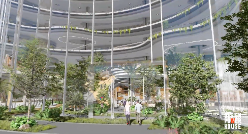 开放的垂直公园和地下商业广场,由中央楼梯井连接。