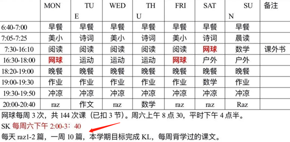 早上七点开始阅读,随后进行美术、数学、作文、阅读英语书籍等项目,直到晚上八点结束。