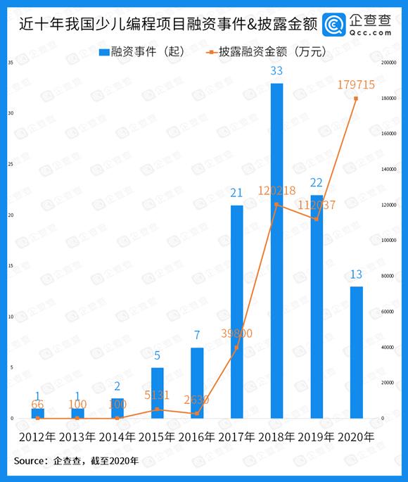 2.查查DATA 《少儿编程掀起“资本热”:近十年总披露融资金额近46亿,2020年达18亿》