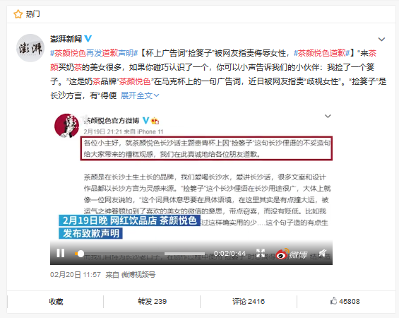 不过,即使拥有强大的互联网思维,茶颜悦色在营销上也曾有“抖机灵”失败的时候。比如之前“物化女性”、“杯子容量不符”、“被质疑使用植物奶油”等事件均“翻车”。虽然,事后茶颜悦色都在第一时间进行了回应说明,但还是给品牌形象造成了一定的影响。