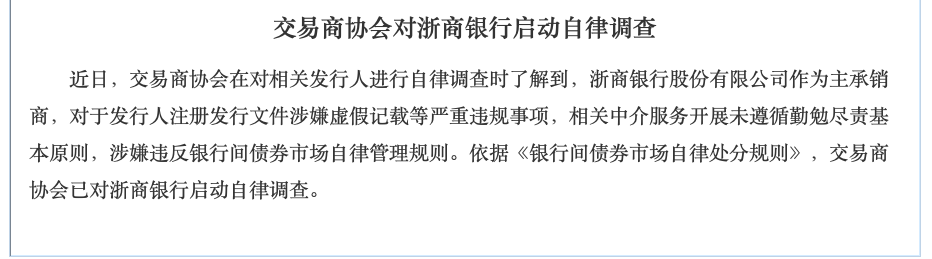 依据《银行间债券市场自律处分规则》,交易商协会已对浙商银行启动自律调查。