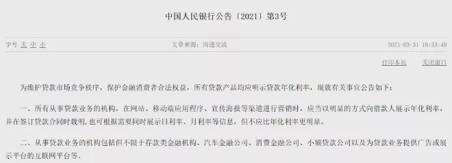 央行首次要求明示贷款年化利率!