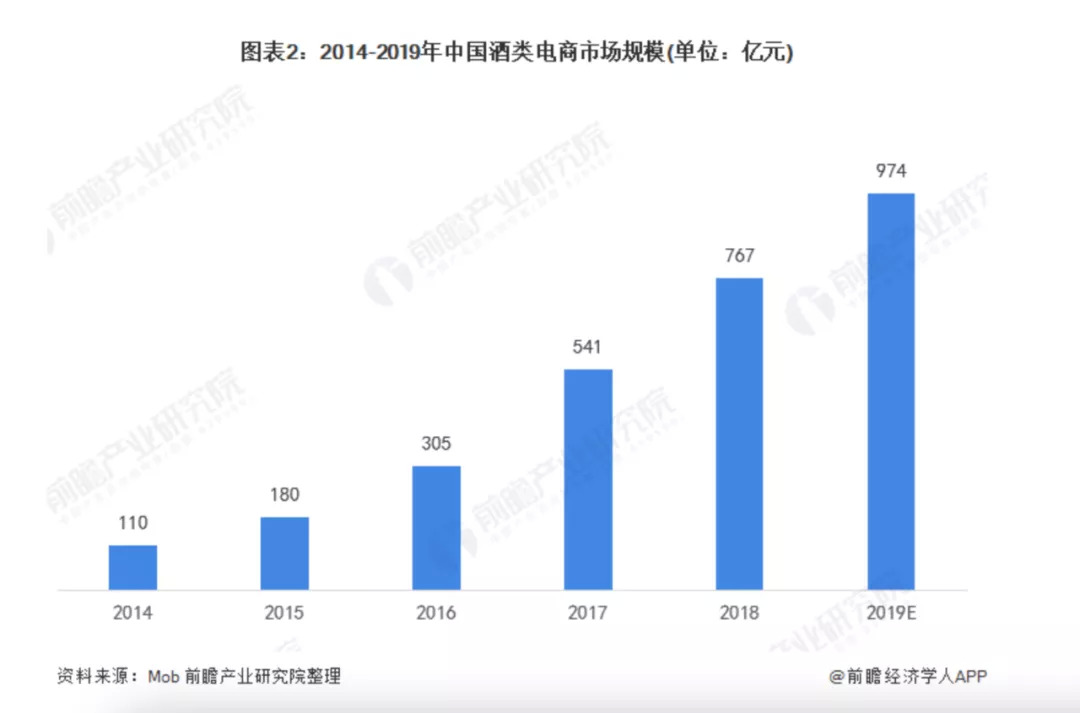 而在买酒渠道上,一直以来互联网思维的冲击并不是很成功,传统烟酒商店和大型连锁商超模式主导势力强大,但过去几年的时间内,酒类电商正在量级增长,疫情更加速了消费者对线上渠道的接受度。