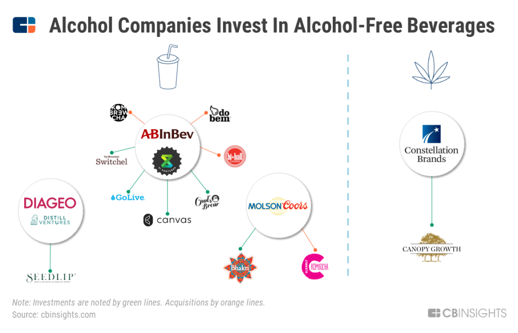 5.From Alcohol-Free Gin To Sparkling Cannabis Water, Alcohol Brands Are Pushing Into Non-Alcoholic Beverages (CBInsights)