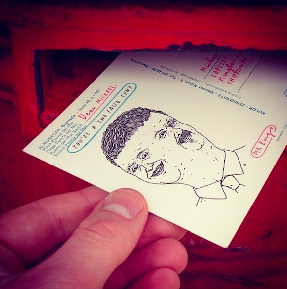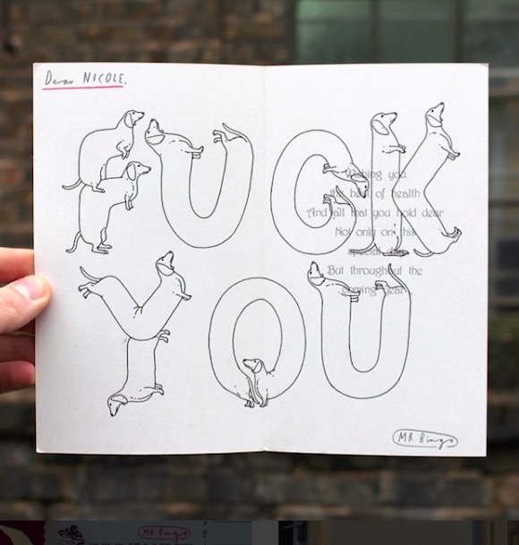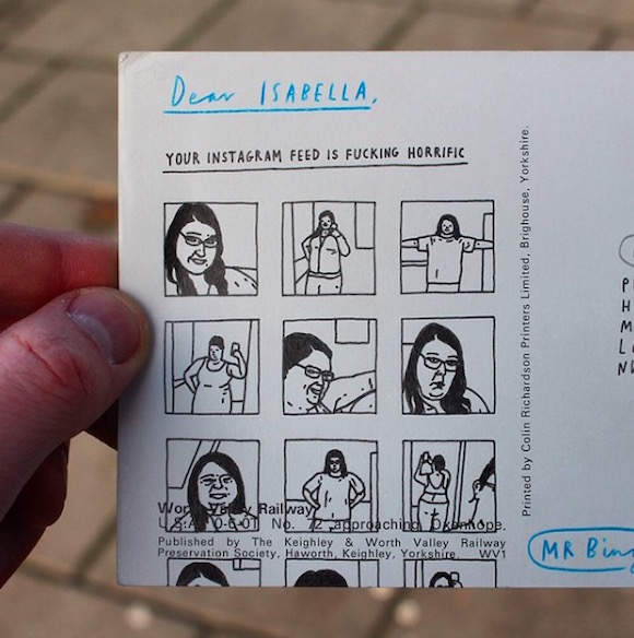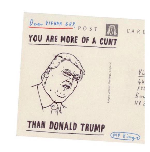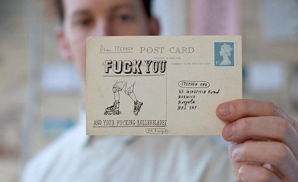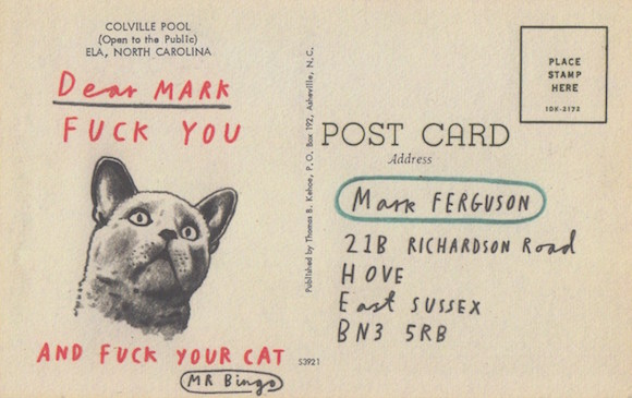 但人家Mr. Bingo三天后就决定把这件事情一直做下去:定制骂人明信片,而且还是收费的,一张50英镑!还不包邮哦亲!