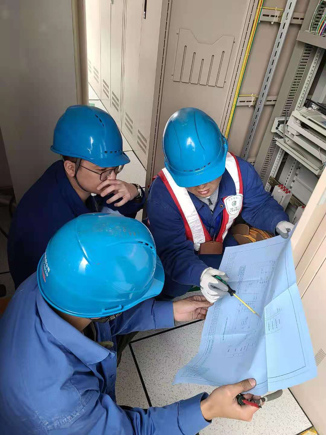 春节前,项目团队在得到年后上马雁苍变电站改造工程的确切指令后,包括沈伟建、刘成文、谭雪松等技术骨干主动放弃春节期间与家人团聚的时间,抓紧时间仔细审图,发现问题主动和设计进行网上对接,同时加强现场踏勘工作,编制包括主变保护屏改造专项方案在内的详细的施工方案。“施工图纸是大年初四到的,后续设备和电缆到货比较晚,给施工进度带来比较大的影响。好在我们有蔡郎变、通济变改造经验,预先估计了困难,提前做好了充分准备,像每个间隔、每一个设备、每个屏柜搭接清单都制定完备,每一根电缆的拆除、接入工作清晰可见,工作细化到了每一个回路,每一个端子。”项目成员刘成文说道。