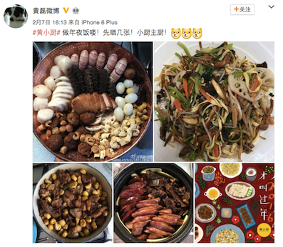 成为演员之后,黄磊把给家人做饭当做自己的减压方式。“从买菜做饭,到吃上,一条龙我都包了,只要我在家都是我来。”去年,黄磊还推出了一个以“黄小厨”命名的APP,希望“在美食和生活方式的圈圈里和你们一起玩儿,一起淘米洗菜烘焙,一起念诗赏花喝小酒”。