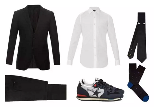 Look2:经典的都教授同款,正装配跑鞋还要再流行一段时间