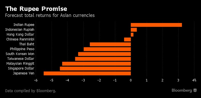 彭博社30日报道援引策略师的预测显示,包括利息在内,现在开始投资卢比,到年底(12月31日)回报率将达到3.2%,居亚洲货币之首。
