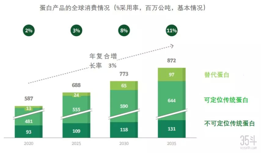 图1 到2035年,替代蛋白很可能会占到蛋白质市场11%的份额
