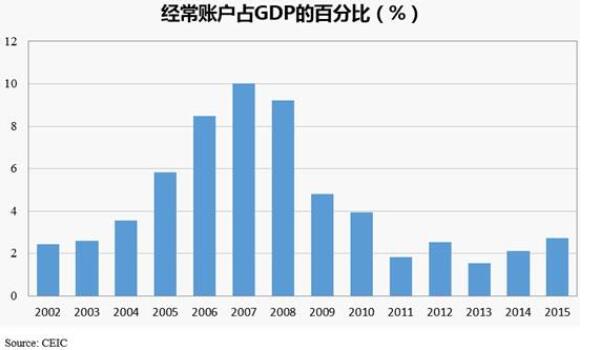 前些年,中国出于对出口减少的担忧而控制名义汇率的涨幅,这种做法长期不一定有效,甚至还会有副作用。根据购买力平价,这会造成中国资产和货物价格的上升。从近十几年来的数据也可以看出,名义汇率的低估对中国短期的资本流入、经常账户顺差有很大影响(参见以下两张图)。