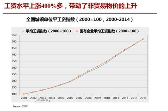 2001年至2013年左右,人民币汇率水平经历了一个由被低估到平衡的过程。在中国还未加入WTO未对国际市场大规模开放时,购买力平价并不成立,当时中国的货物和资产显然更便宜,即:国外物价>中国物价×汇率。中国加入WTO对世界开放后,以上不等式就会有压力而回归等式,这时人民币就需要升值,不然中国物价会上涨。