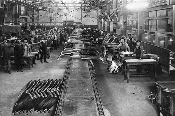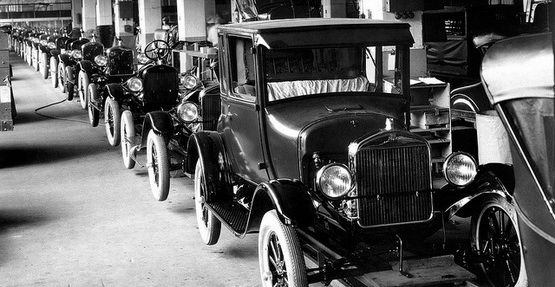1908年,福特公司推出史无前例的、最成功的福特T型车。这车简直太牛逼了,质量又轻,价格还便宜,登上了当时美国人梦想清单。