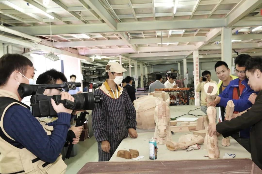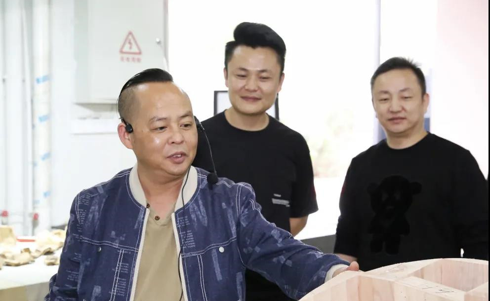 古歌设计公司艺术工厂厂长何福峰亲自给来自媒体朋友和广西环境艺术设计行业协会的负责人进行讲解,对工艺、技术和制作详细解说,并带领大家对古歌工厂进行全面参观。