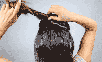 - 将上半层的头发用头绳固定,梳一个松松的不规整的小辫;