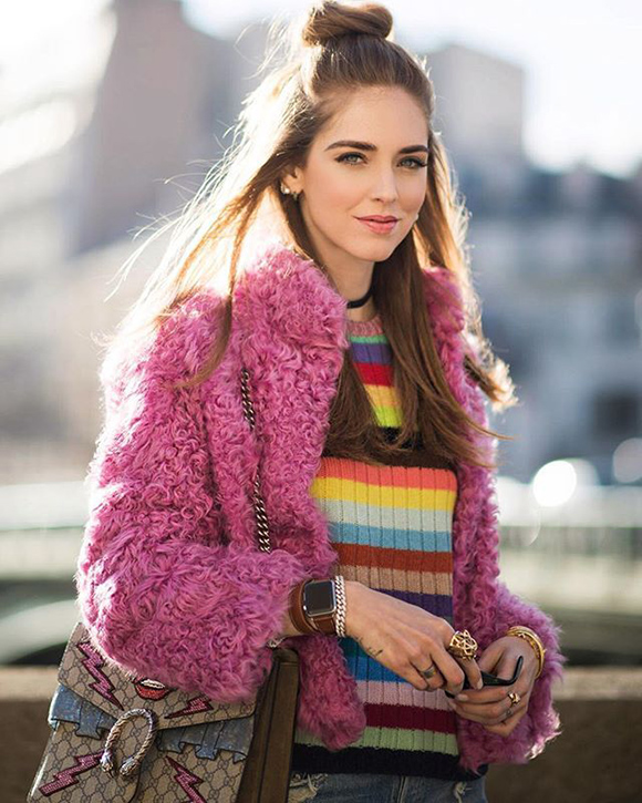 还有肤白貌美 Chiara Ferragni,特别爱扎 Hun+穿着新鲜亮丽整齐: