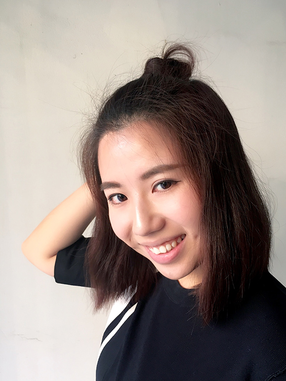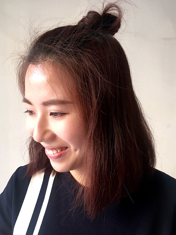 在另一位短发记者的身上,我们试验了一根皮筋定型的小 bun,然而效果是并不明显:
