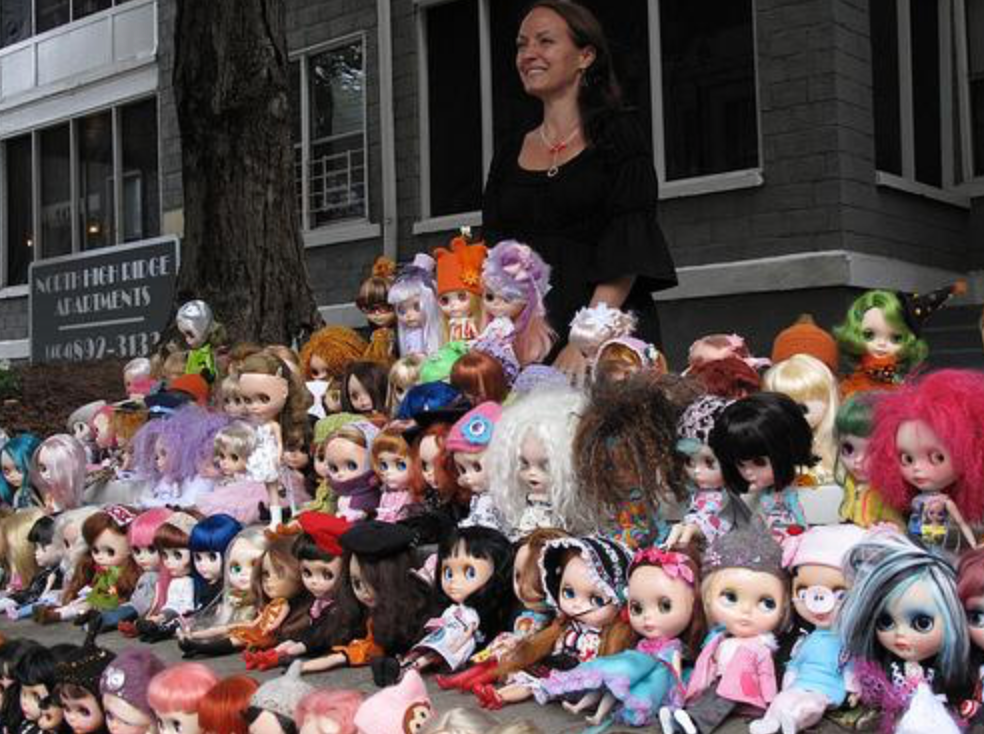 她的娃多数生在海外,以日韩籍居多。每个孩子的风格迥异,BJD、OB11、Blythe(小布)、棉花娃娃,煞是环肥燕瘦。即便同一款大眼小布,也可以养出朋克、嘻哈、时尚种种设定。