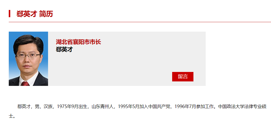 2017.11-2018.01 襄阳市委副书记,市政府副市长、代理市长、党组书记