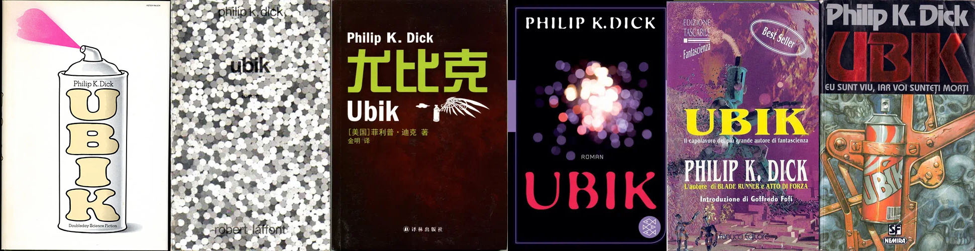 一九六九年出版的《尤比克》(Ubik),文本时间设定于一九九二年的未来世界。在那个时代,心灵感应的超能力被用于商业间谍活动;人在刚刚去世时残存在大脑中的意识,能够作为信号被捕捉并进行交流。小说的男主角是反超能公司的一名技术员乔·奇普,他的老板朗西特死于其商业对手在月球上策划的一场大爆炸。乔为寻找朗西特的亡灵信号,在不同时空的多重现实之间穿越往来,最后却发现:朗西特一直活着,死掉的是他自己,整部小说似乎只是他在自己的亡灵意识中完成的历险。而全书的另一个主角,在文本中无所不在的“尤比克喷雾罐”广告,以及广告词中这一商品的无所不能,带来梦呓般的叙事效果,令文本内外的人物和读者,自始至终都无法确知哪一重世界是“真的”,或可能是“真的”。格罗斯曼(Lev Grossman)恰如其分地评价这部小说为“一个极度令人不安的存在主义恐怖故事,一个你永远无法确认是否已经从中醒来的噩梦”。