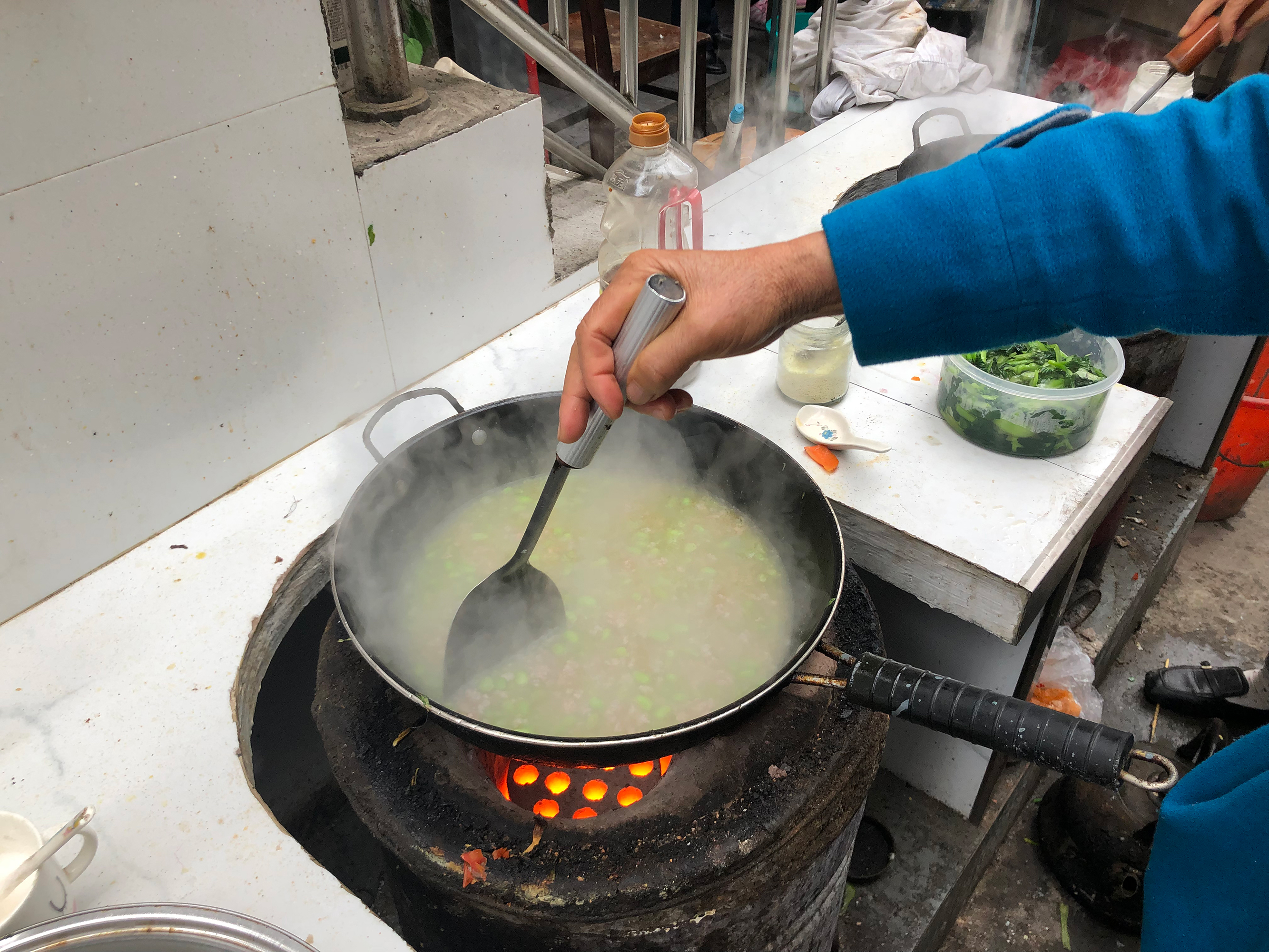 邻里、房东关系以及与政府的多次打交道都让夫妻俩头疼。爱心厨房是一个拥挤的地方,每天上午10点至11点半是使用高峰期,三十余个煤炉需要同时开火。这个狭小到可怜的空间内同时塞着几十号人,左右各站着一排家属,中间只得一人宽的缝隙,偶尔有身高体壮的男人经过,必须侧着身,将手中的炊具举至头顶高,才能勉强通过。更何况无孔不入的噪杂声:高压锅安全阀旋转的滋滋声、油锅翻炒的声音、家属们的说话声…