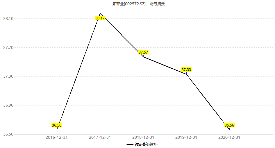 有一点需要注意的是,2020年索菲亚销售毛利率小幅下降至36.56%。这是公司连续第四年销售毛利率的小幅下滑,这种趋势值得警惕。