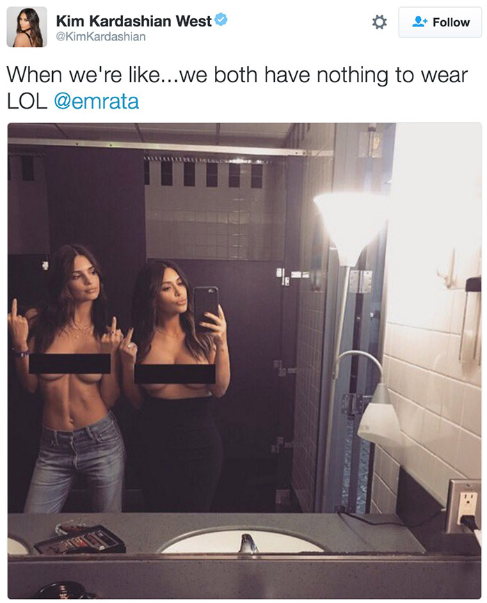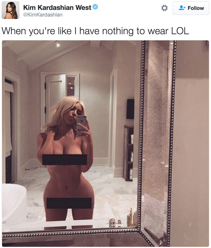 早在本月初,卡戴珊就已经在Twitter上发布过一张裸体自拍,引起了互联网暴动。