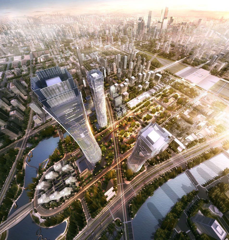 项目整体由1栋306米、2栋240米、1栋150米、4栋120米以及20多栋100米左右的高层建筑构成,未来将建设成为郑州中央商务标志性建筑群。在项目建筑设计维度,地标三塔由国际知名的建筑设计公司美国MZA担纲设计,旨在从建筑的内涵功能到外部造型,都传达出既富有传统韵味又独领未来的标志性特质。