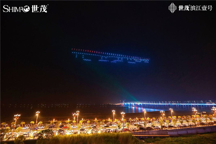 (实景图)随后,启动台上空翩然升起“世茂滨江壹号”几个大字,超千台无人机编队缓缓升空,在夜空中“启动”倒计时按钮,世茂滨江壹号肇庆大桥正在逐步亮起,架起一座肇庆夜景的新地标;空中逐一出现肇庆大桥、世茂滨江壹号、烟花的剪影,灯光和音乐联动,融合3D队形进行组合变幻,形成奇幻感、科技感、艺术感十足的立体画卷。