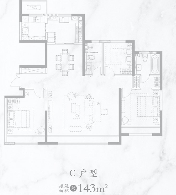 中海带来的流间大境产品系(流是指时间,间指空间)。约6.7 米的大宽厅,配以3.15 米层高,带来大气、开阔的空间以承载时间的流动,从而引领居住品质的改变。