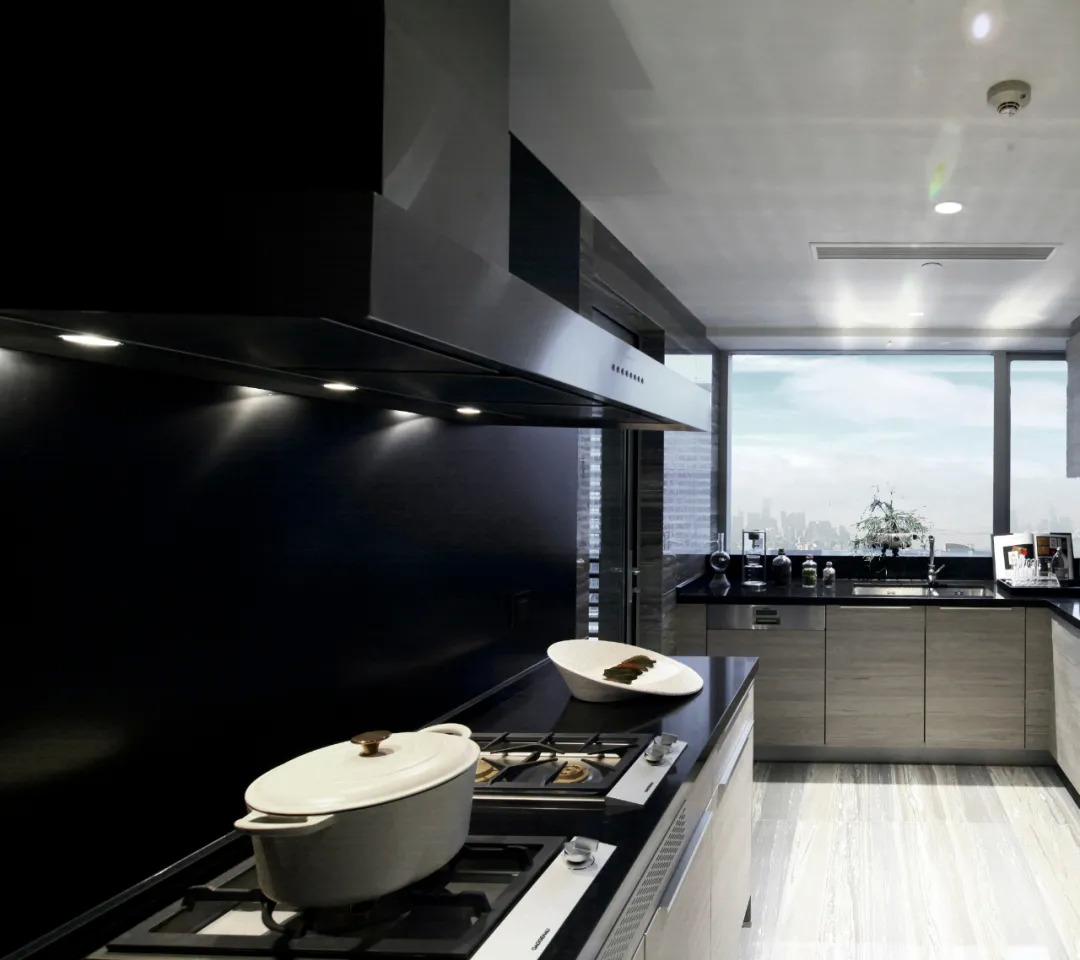 生活不将就,在米其林三星级厨房里可将生活调理得有滋有味,世界奢侈品厨电品牌GAGGENAU八件套带给男女主人精致的料理享受(抽烟机、3燃气头的燃气灶、冰箱、带消毒功能洗碗柜、蒸烤炉一体机、酒柜、咖啡机),此外还配有国际橱柜品牌及人性化配置(厨房空调),种种细节,彰显财富阶层的生活艺术。