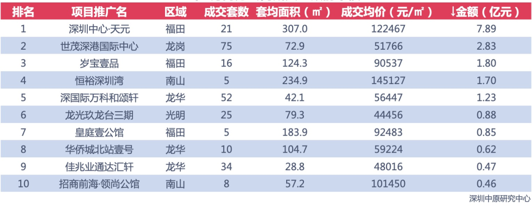 具体到不限购的商务公寓,以今年一季度单月已备案成交金额前10榜单数据看,300㎡以上大平层,有且只有福田深圳中心 天元一个,这类大平层产品,在福田也基本断档。