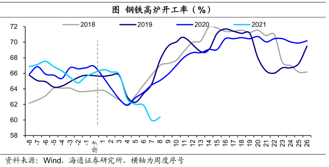 第三,除了需求端的因素外,供给端的扰动也不可忽视。以钢铁行业为例,在限产减排政策的影响下,高炉开工率大幅走低,远远低于往年同期的水平。在需求没有大幅走弱的情况下,严格限制供给,也对价格起到了推高作用。