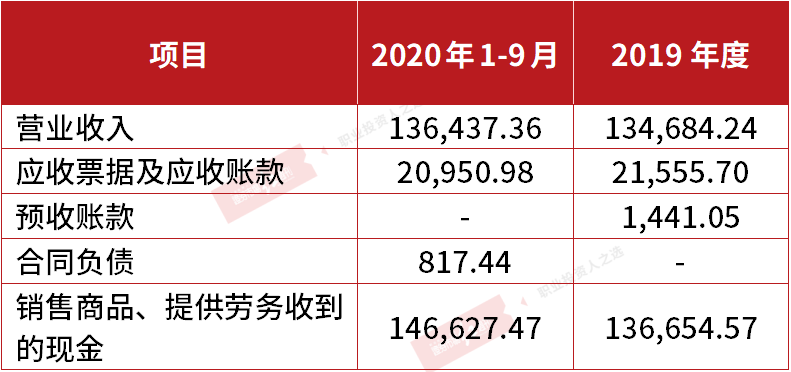 据招股书显示,2020年1-9月,想念食品实现营业收入13.64亿元,其主要销售挂面、面粉、麦麸、小麦等,而该部分产品属于粮食复制品及农产品,据招股书披露,公司适用的增值税率包括17%、16%、13%、11%、10%、9%等,然而,即使按照最低的9%推算,其上述期间的含税营业收入也有大约14.87亿元。理论上,该部分含税营收将体现为同等规模的现金流入以及经营性债权的增减。
