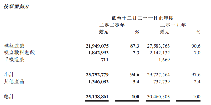 截至3月末,CMON共有100款游戏,包括94款棋盘游戏、三款模型战棋游戏、两款手机游戏及一款电脑游戏。