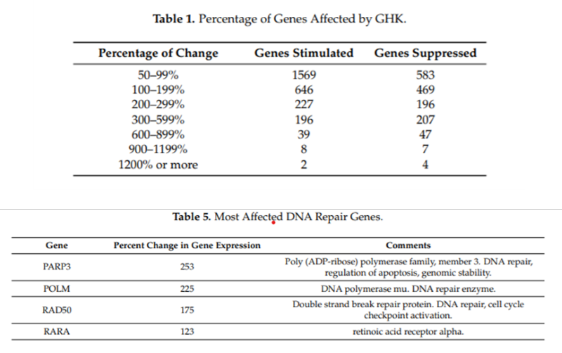 三肽-1影响DNA修复基因以及受影响的基因百分比(截图自相关文献)