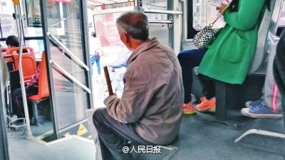 昨天,郑州一辆公交车上,一农民工模样的老人手拿工具上了车。四名乘客争着为老人让座,均被婉拒,老人坚持坐在地板上。“我就坐这儿,身上太脏。”乘客说:老人让人感动,可爱又可敬!