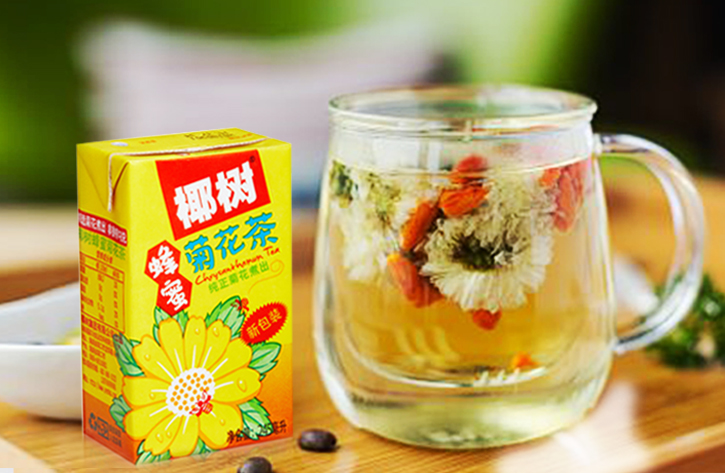 椰树菊花茶一直以来选用优质杭白菊、天然百花蜂蜜、维生素C、白糖等原料,以天然矿泉水调配,菊味芳香、蜜味清醇,饮之清爽可口,清凉解渴,是四季皆宜、夏季尤佳的优质天然饮品。