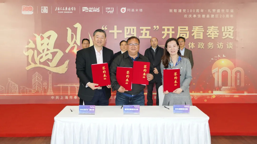 昨天上午,《遇见未见——“十四五”开局看奉贤》融媒体政务访谈启动,正式拉开奉贤区委宣传部、奉贤区融媒体中心与SMG融媒体中心、SMG东方广播中心签约合作序幕。中共奉贤区委书记庄木弟,上海广播电视台台长、上海文化广播影视集团有限公司总裁宋炯明等见证签约。