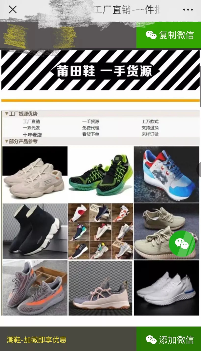 目前莆田鞋货源大致分四类,工厂,放店,档口,各种微商一件代发。