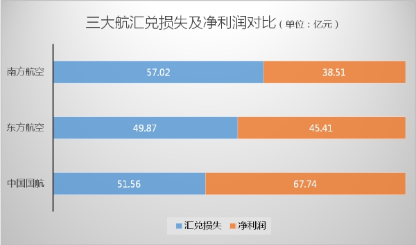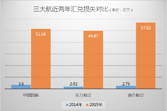 三大航空公司在2015年的汇兑损失金额终于揭晓。