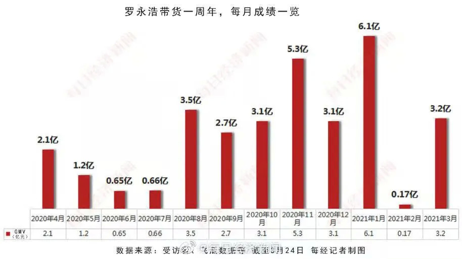 罗永浩无法做到抖音头部,GMV的现实也带来了外部压力。2020年下半年,多家媒体报道“罗永浩不行了”。