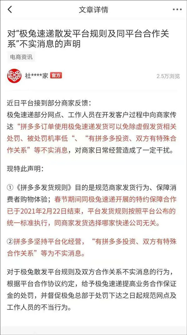 拼多多否认与极兔存“特殊关系”,来源:拼多多