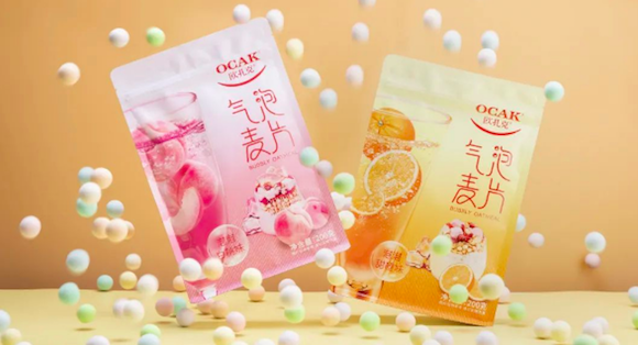 近两年,欧扎克的麦片系列也围绕“轻食生活”在不断推陈出新,提供包括干吃麦片、水果麦片和酸奶麦片等产品。2020年,欧扎克创新推出气泡麦片系列,今年又上市了轻盐系列产品。