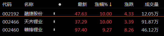 4月14日,锂业上市公司股价均大幅上涨。天齐锂业(002466.SZ)、融捷股份(002192.SZ)收获涨停板,赣锋锂业(002460.SZ,01772.HK)A股股价上涨9.27%、港股股价上升8.17%。