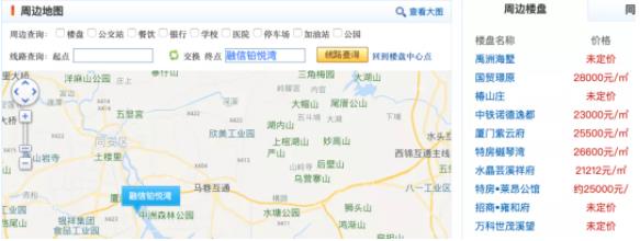 图2 厦门蓝房网所示厦门铂悦湾周边楼盘价格