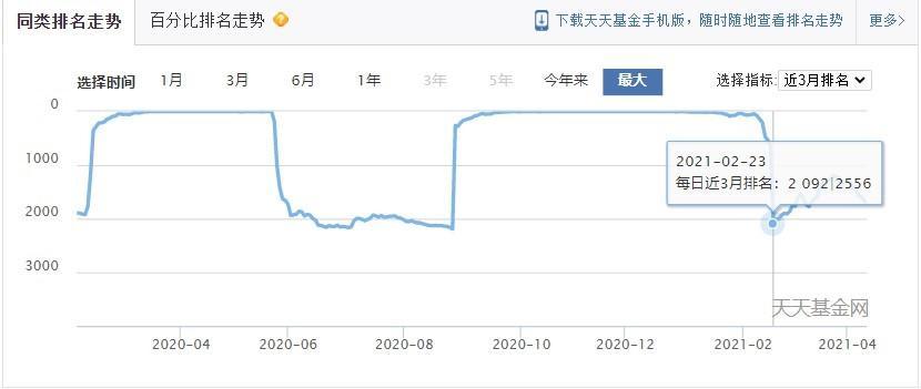 从排名走势来看,民生加银嘉盈债券自成立以来,出现两个阶段排名大涨大跌。2020年2月至5月,其排名升至同类第一名,后续跌至2000名后;2020年8月末至2021年初,其排名再次大涨,升至同类第一名,后续持续下跌,2021年2月25日直线跌至2000名以后。