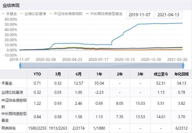 民生加银嘉盈债券成立于2019年11月7日,至今为止运作时长不足两年,但业绩非常惊人。近1年来,其净值增长率达到35.04%,自成立以来达到52.32%。但其近期表现却不如人意,近3个月来净值增长率仅0.32%。为何出现“冰火两重天”呢?