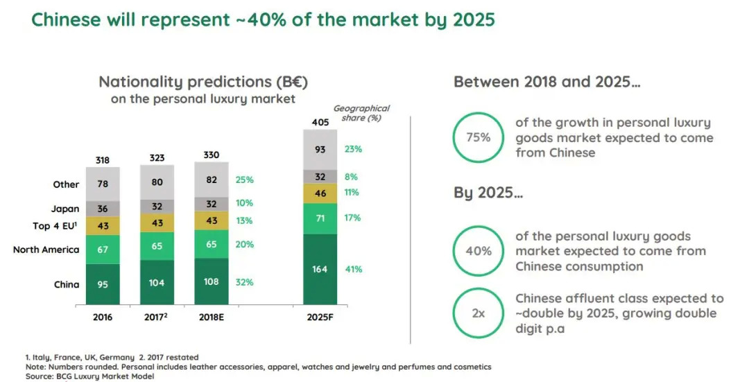 数据显示,到2025年,中国奢侈品市场份额将占到全球约40%,中国有望成为全球最大的奢侈品市场。机构分析师强调,“未来的增长将比以往任何时候都更加依赖中国推动,中国会继续主导全球奢侈品行业的发展。”
