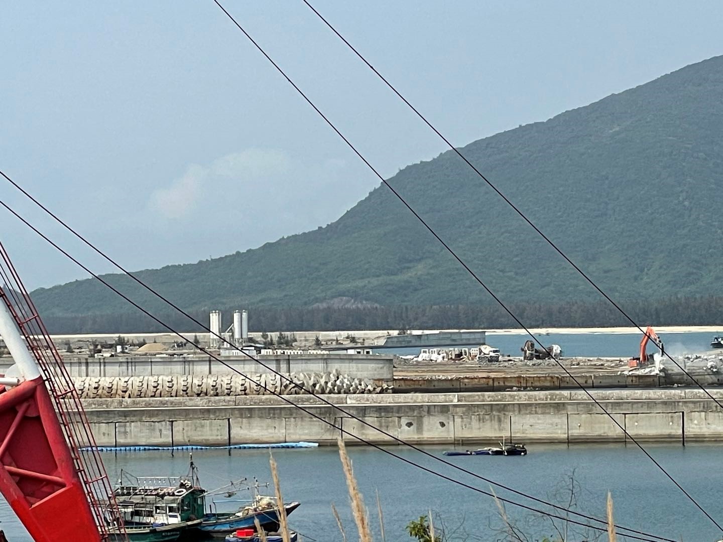 通过跨海大桥进入项目内部,可以看到日岛通向月岛连桥在海中戛然而止,挖掘机正在凿开月岛地面和围堰,月岛已经开始拆除。一位项目内部工作人员告诉界面新闻,拆除工作于上周就开始启动。
